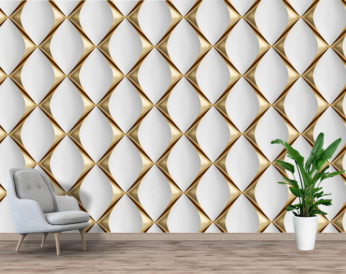 Modern Luxury with 3D Gold Diamond White Pattern Mural Print