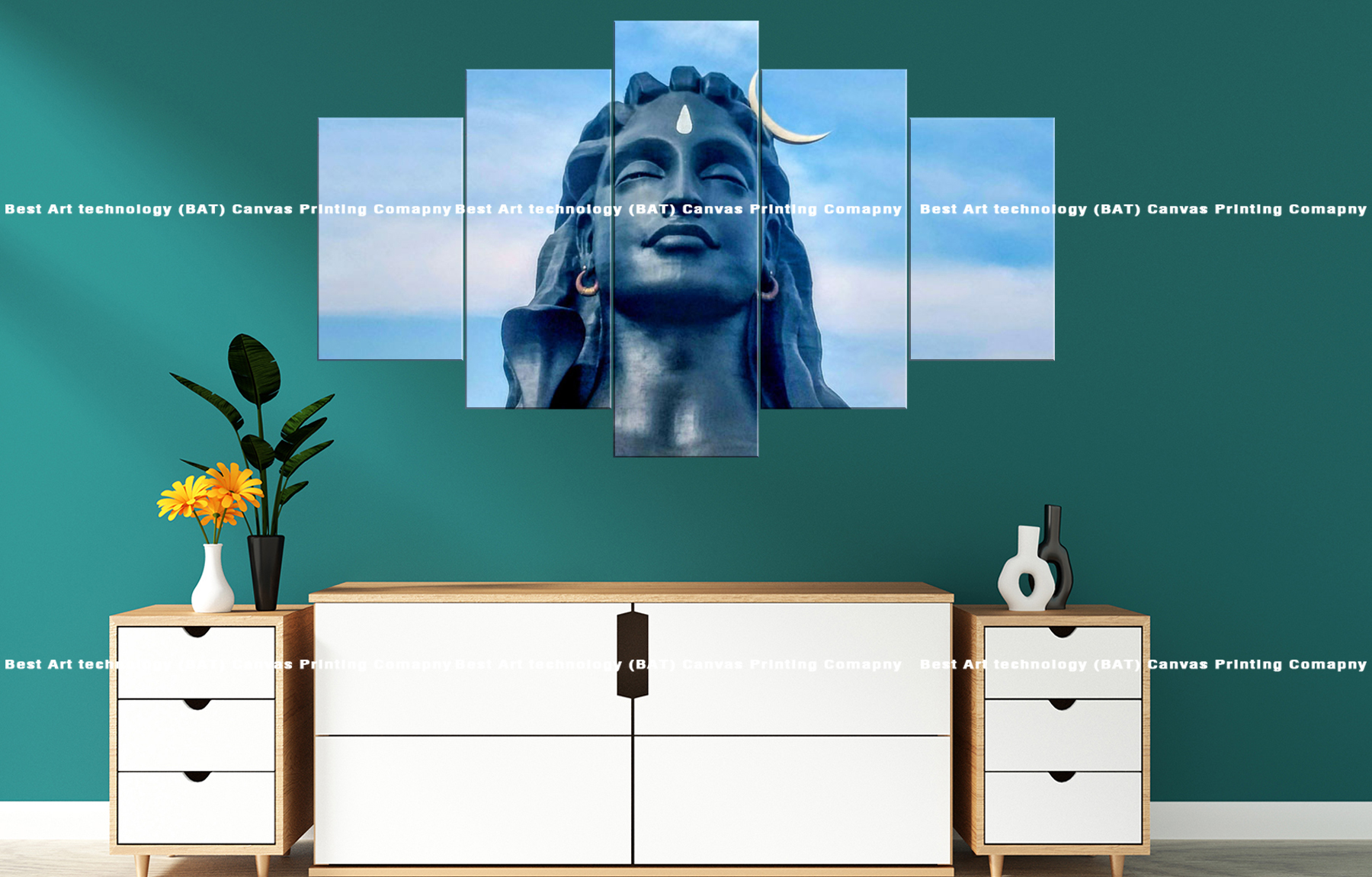 Transform your living room or meditation space with the Adiyogi Shiva Canvas Print. This striking multi-panel canvas print features the Adiyogi statue, symbolizing peace, calmness, and spiritual transcendence. The cool blue tones and detailed rendering create a tranquil and powerful spiritual atmosphere.