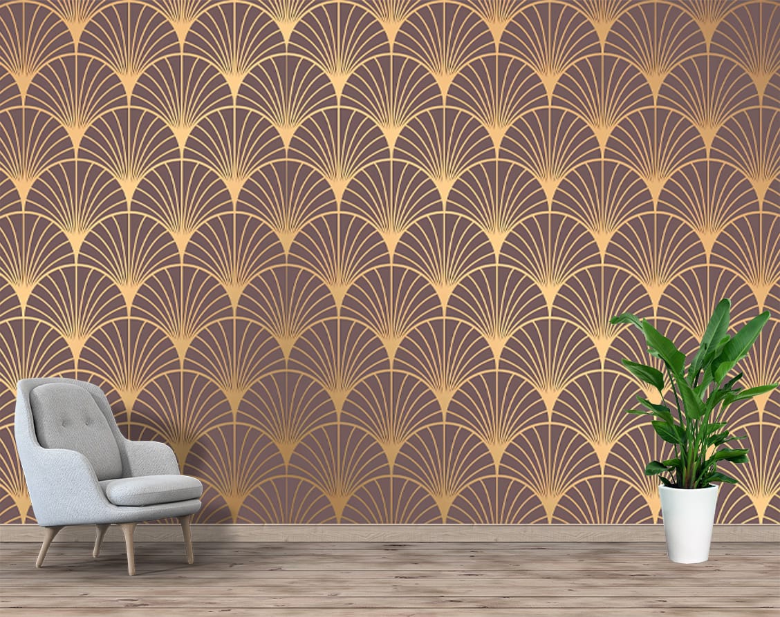 Elevate your interior with the timeless elegance of the Art Deco Fan Pattern Mural Print. Featuring a repeating motif of stylized fan shapes in sleek gold lines against a rich brown backdrop, this mural captures the iconic glamour of the Art Deco era. The bold geometric design adds depth, texture, and vintage sophistication to any space.