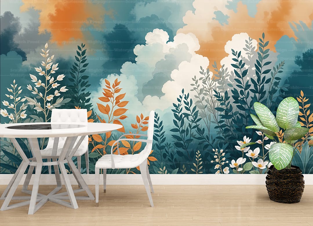 Beautiful Moment murals prints bring a serene and calming natural scene into your home. This mural features a stylized landscape with soft, watercolor-like clouds, foliage, and flowers, creating a peaceful and relaxing atmosphere. The warm and cool tones blend seamlessly, adding a touch of artistic elegance to your space. Perfect for creating a tranquil environment in any room. Crafted with high-quality materials, this mural transforms your walls into a serene escape. Also, explore our collection of murals for more inspiring designs.