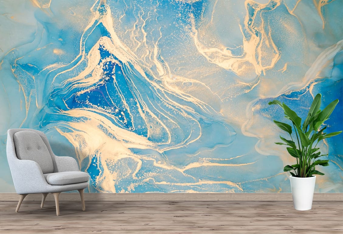 Transform your walls into an expression of elegance with the Blue Gold Abstract Marble Mural Print, and explore our other abstract murals for unique designs here.