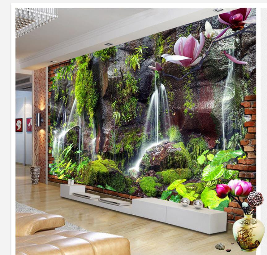 + Shipping costRustic Serenity with Brick Wall Waterfall Mural