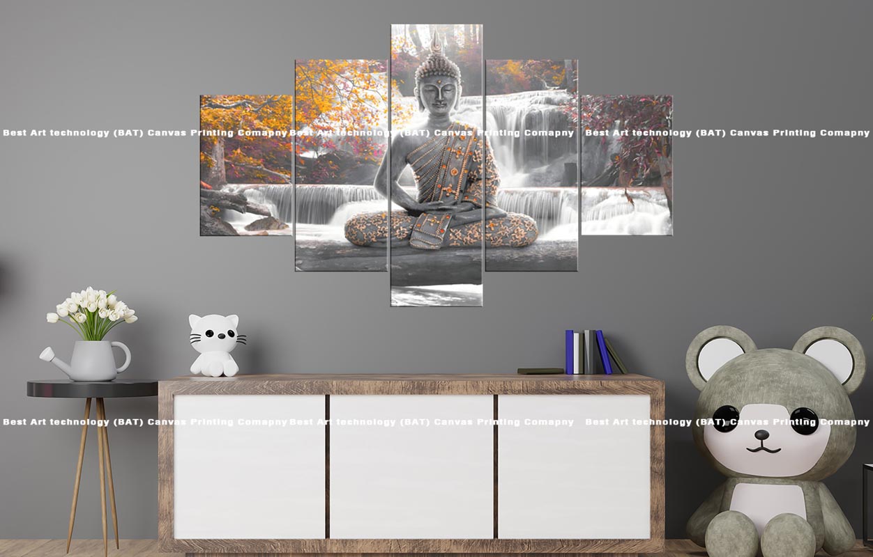 Enhance your walls with the serene presence of the Buddha and the subtle vibrancy of this artwork. Explore our other related Buddha canvas prints here