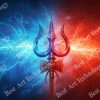 - High-Resolution Print: Captures the iconic form of the Trishul and the contrasting yet balanced blue and red lightning against the detailed dark background with text.