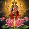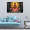 • High-Resolution Print: Captures the majestic image of Goddess Durga on the lotus, accompanied by the two attendant figures against the dark background.
