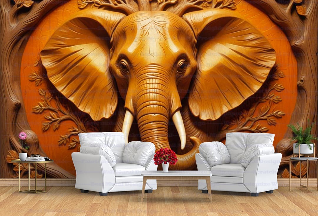Elephant head murals prints bring the majestic beauty of elephants into your home. This mural features a stunning 3D image of an elephant’s head, surrounded by a carved wooden-like frame and tree branches, creating a powerful and captivating scene. The detailed texture and warm tones add a touch of natural elegance to any room. Perfect for wildlife enthusiasts and those seeking a unique decor piece. Crafted with high-quality materials, this mural transforms your walls into a breathtaking display of nature’s beauty. Also, explore our collection of murals for more inspiring designs.