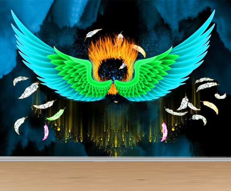 Transform your space with our Fire Wings Mural. This mural features a captivating design of vibrant wings with a fiery core, surrounded by floating feathers, creating a mystical and dynamic atmosphere. Each mural is printed with high-quality materials and vibrant inks, ensuring a lasting and visually appealing addition to your decor. Perfect for living rooms, bedrooms, or creative spaces seeking a unique and energetic vibe, this mural adds a touch of magic and inspiration. Display it in your main area to create a captivating focal point. Explore our collection of fantasy and mystical murals for more unique and imaginative designs.