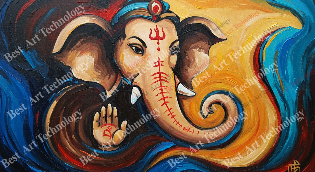 - High-Resolution Print: Captures the abstract and flowing forms of Lord Ganesh and the vibrant colorful background.