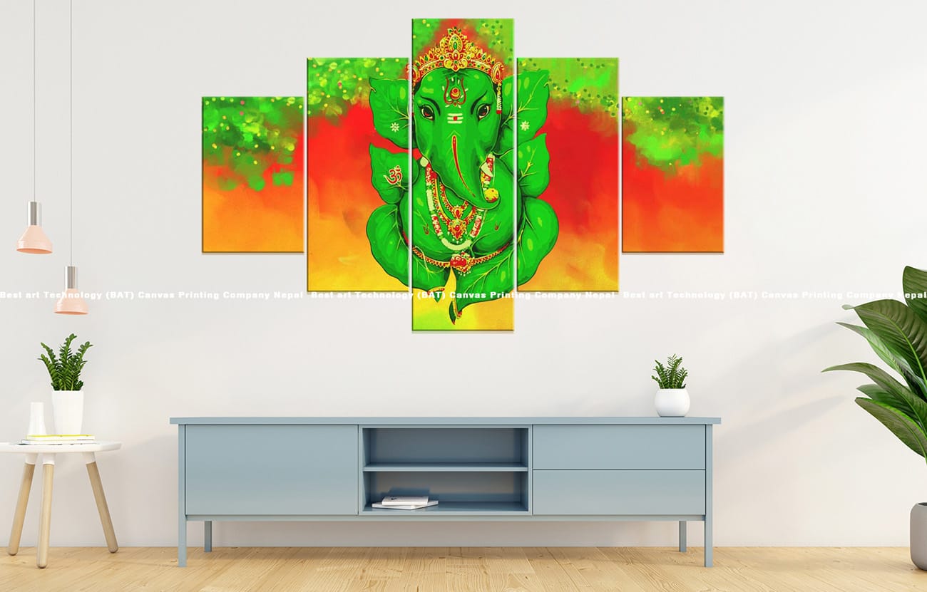 Add a touch of vibrant growth with the Ganesh Green Nature Abstract Canvas. This multi-panel artwork features Lord Ganesh in vibrant green tones, surrounded by abstract nature elements, blending divine imagery with lively artistic expression.
