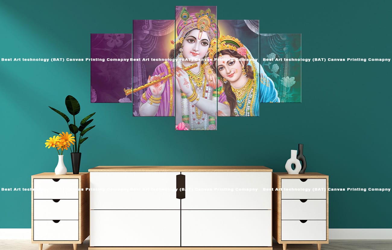 • Premium Quality Canvas Print: High-resolution multi-panel design featuring Radha and Krishna with a flute in soft colors.