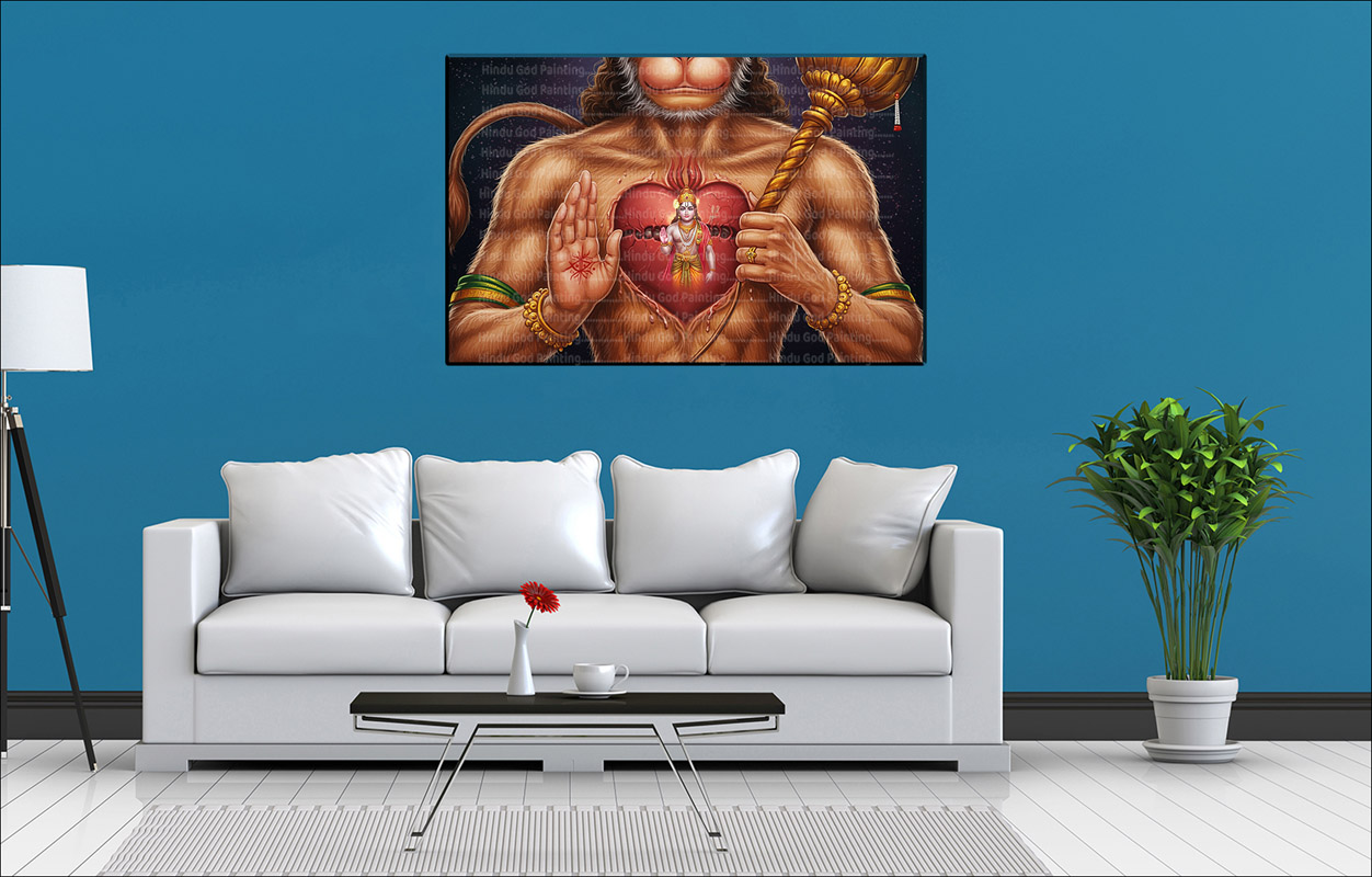 - High-Resolution Print: Captures the powerful image of Hanuman revealing Rama and Sita in his heart.