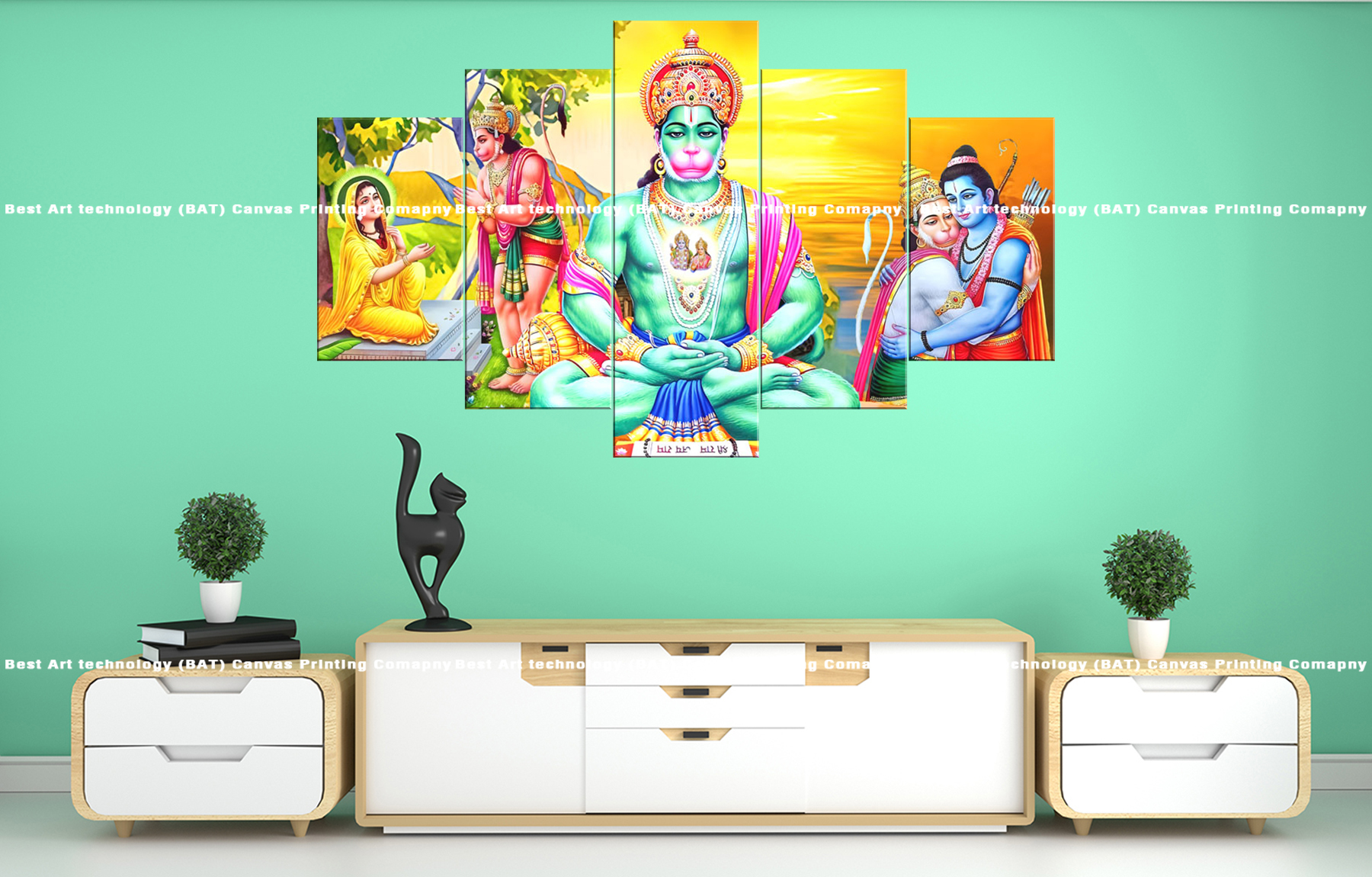 Transform your living room or prayer space with the Hanuman Ram Sita Divine Canvas Set. This stunning multi-panel canvas print features Lord Hanuman at the center, flanked by Lord Ram and Goddess Sita, symbolizing strength, devotion, and the divine narrative of the Ramayana. The vibrant colors and detailed depictions create a spiritually powerful atmosphere.