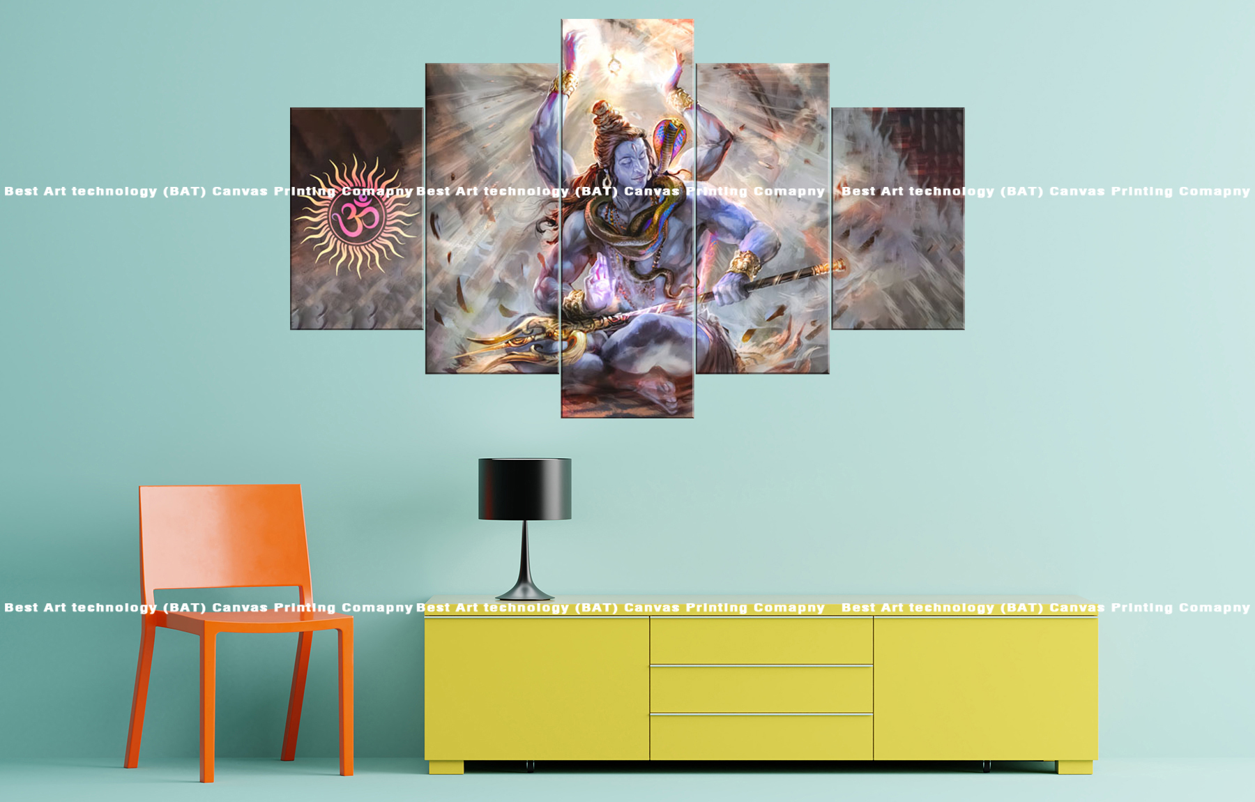 Transform your living room or meditation space with the Lord Shiva Abstract Art Canvas Print. This striking multi-panel canvas print features Lord Shiva in a dynamic abstract representation, symbolizing divine energy, power, and spiritual transcendence. The unique artistic style and vibrant colors create a powerful and captivating spiritual atmosphere.