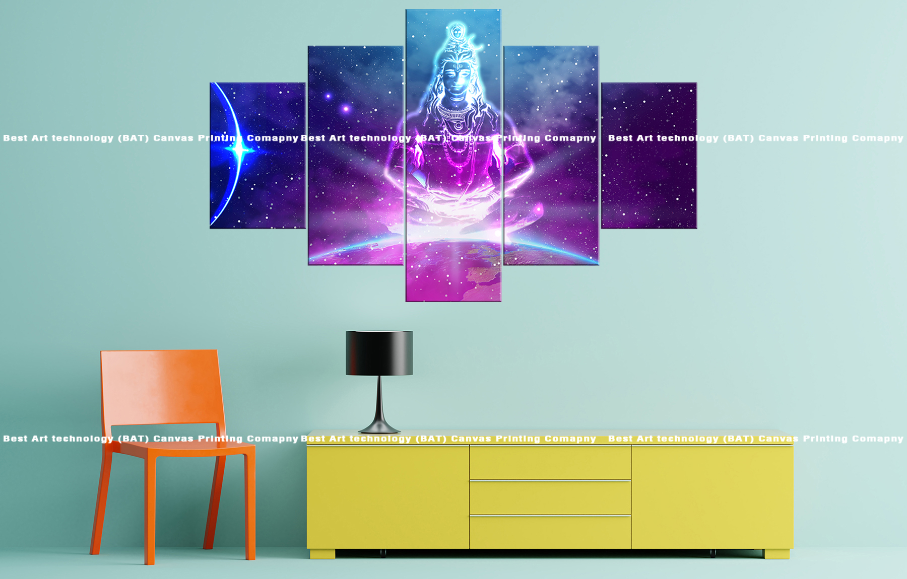 Transform your living room or meditation space with the Lord Shiva Galaxy Canvas Print. This striking multi-panel canvas print features Lord Shiva in a deep meditative pose against a stunning galaxy backdrop, symbolizing inner peace, cosmic energy, and spiritual transcendence. The vibrant colors and detailed rendering create a powerful and awe-inspiring spiritual atmosphere.