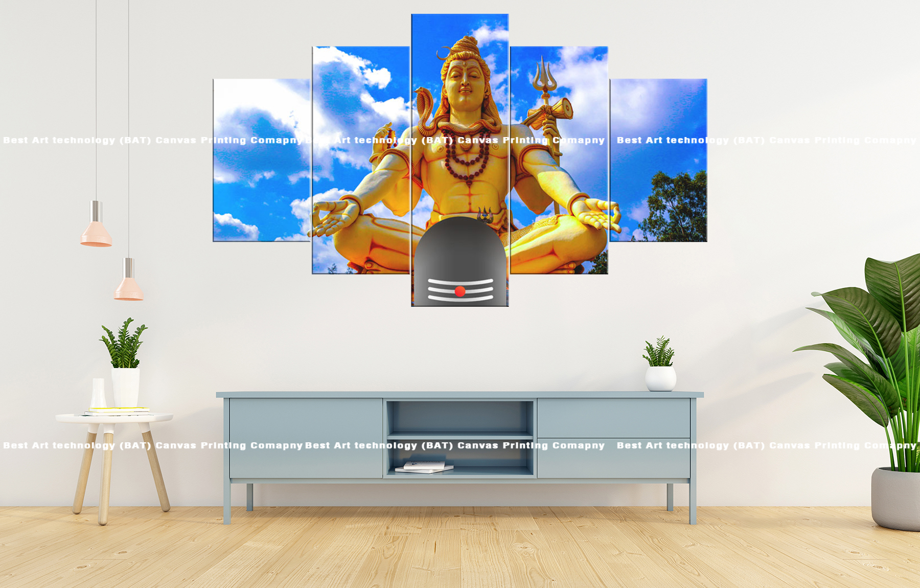 Transform your living room or prayer space with the Lord Shiva Lingam Canvas Print. This striking multi-panel canvas print features Lord Shiva seated in a meditative pose, with the sacred Lingam prominently displayed, symbolizing divine blessings, spiritual energy, and protection. The vibrant colors and detailed rendering create a powerful and auspicious atmosphere.