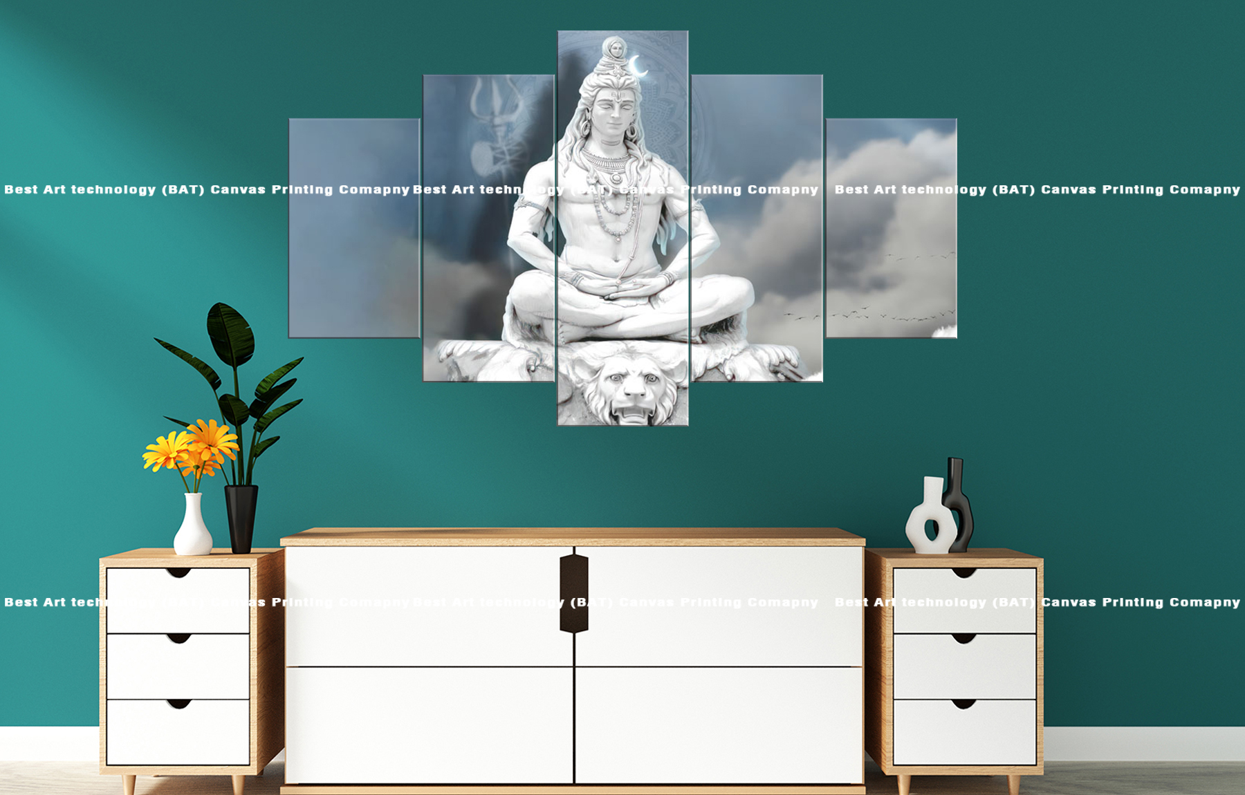 Transform your living room or prayer space with the Lord Shiva Meditation Canvas. This stunning multi-panel canvas print features Lord Shiva in a meditative pose, symbolizing peace, strength, and spiritual transcendence. The monochromatic tones and detailed rendering of the scene create a serene and powerful spiritual atmosphere.