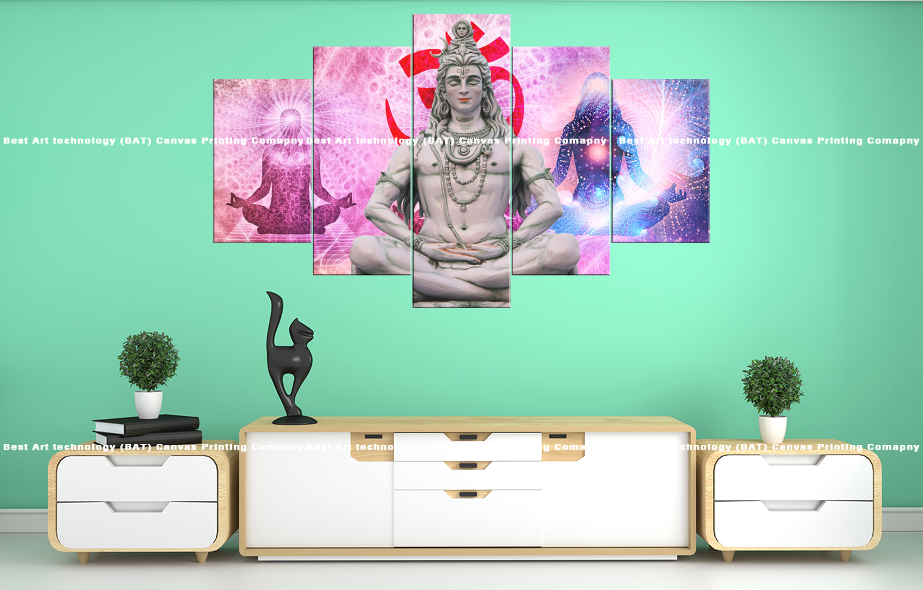 Transform your living room or meditation space with the Lord Shiva Om Meditation Canvas Print. This striking multi-panel canvas print features Lord Shiva in a deep meditative pose, accompanied by the sacred Om symbol, symbolizing inner peace, spiritual focus, and transcendence. The vibrant colors and detailed rendering create a powerful and calming spiritual atmosphere.