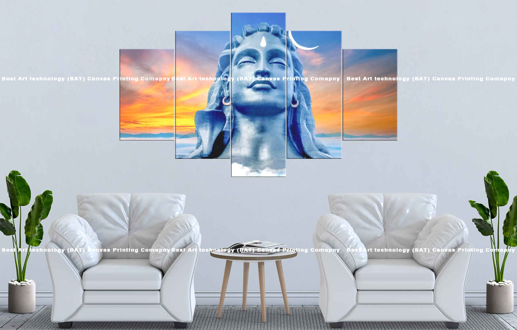 Transform your living room or prayer space with the Lord Shiva Serene Sunset Canvas. This stunning multi-panel canvas print features Lord Shiva’s serene face against a backdrop of a tranquil sunset, symbolizing peace, calmness, and spiritual transcendence. The soft, calming colors and detailed rendering of the scene create a peaceful and divine atmosphere.