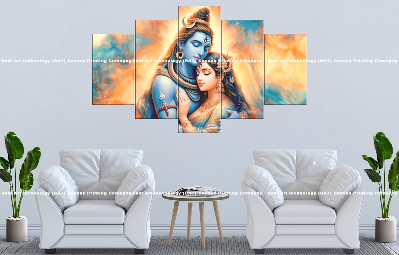 • Premium Quality Canvas Print: High-resolution multi-panel design featuring Lord Shiva and Goddess Parvati in a loving embrace.