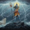 - High-Resolution Print: Captures the majestic figures of Shiva and Nandi and the dramatic intensity of the lightning and clouds.