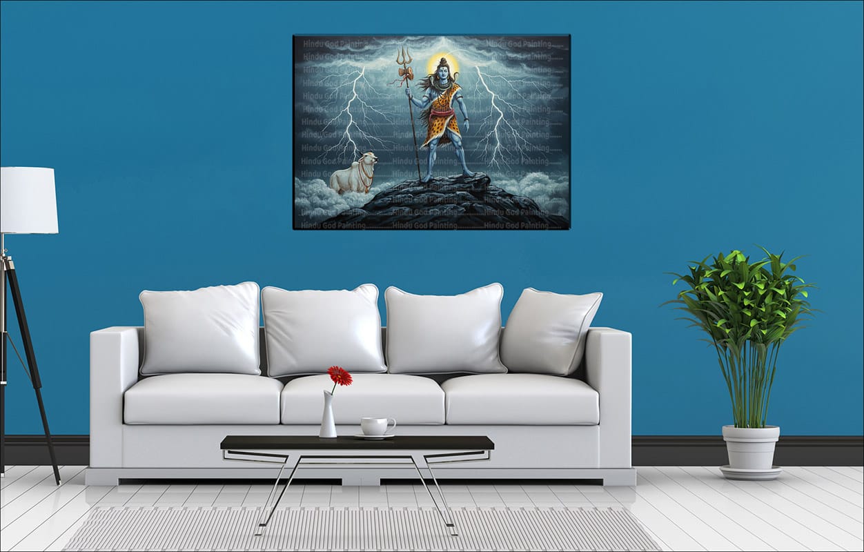 - High-Resolution Print: Captures the majestic figures of Shiva and Nandi and the dramatic intensity of the lightning and clouds.