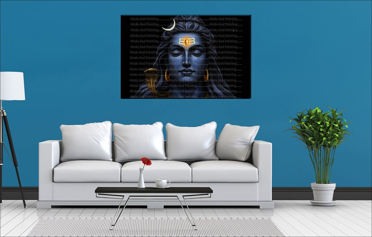 • High-Resolution Print: Captures the peaceful expression of Shiva and the significant details of the Om symbol and crescent moon against the textured dark background.