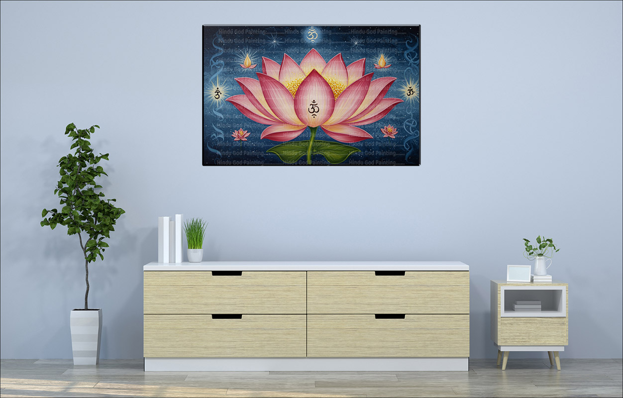 - High-Resolution Print: Captures the vibrant colors of the lotus and the sacred Om symbols against the textured blue background.