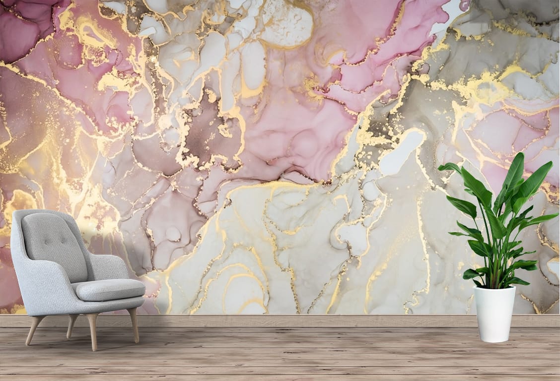 Pink Gold Marble Abstract Mural Print