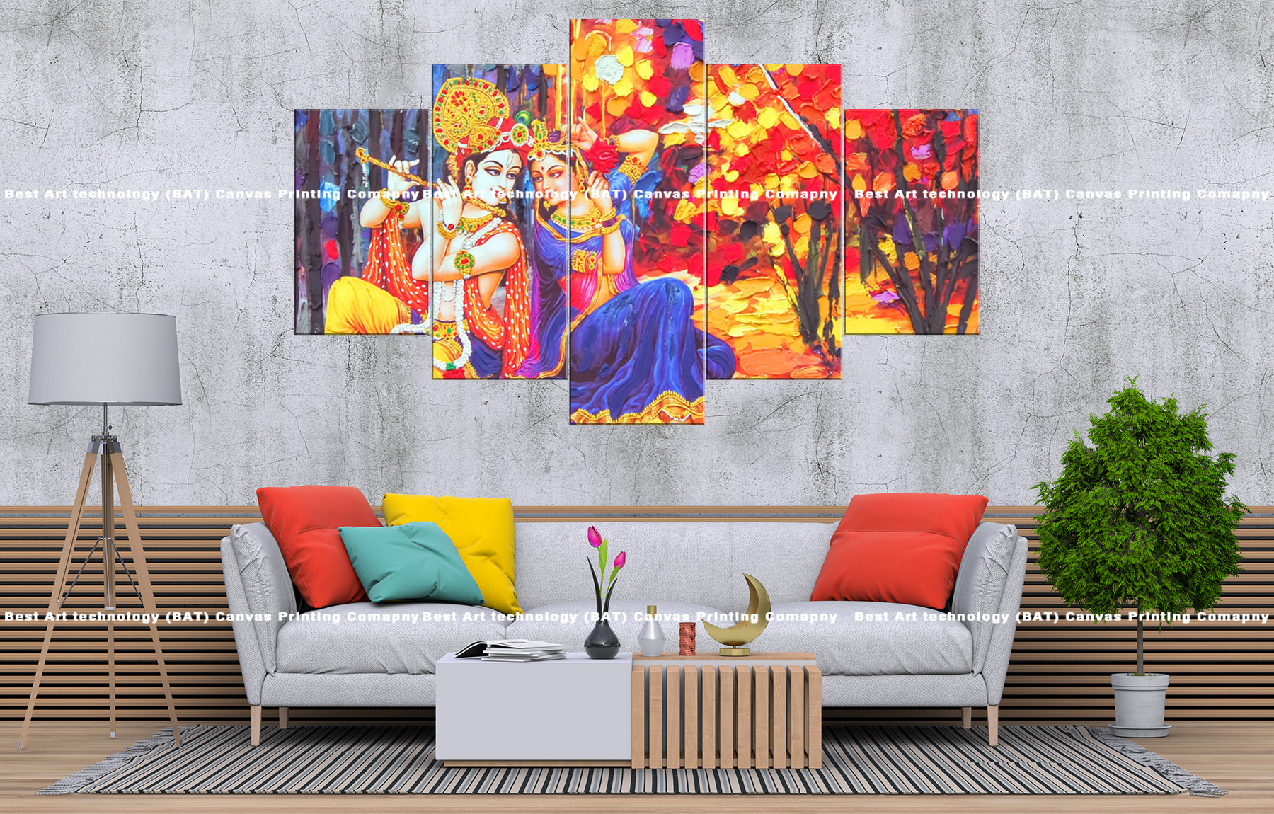 Transform your living room or prayer space with the Radha Krishna Flute Canvas Print. This stunning multi-panel canvas print features Radha and Krishna playing the flute, symbolizing divine love, harmony, and spiritual bliss. The vibrant colors and detailed rendering create a spiritually uplifting atmosphere.