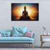 - High-Resolution Print: Captures the luminous gold Buddha, the lotus, and the emanating light against the textured blue and orange background.