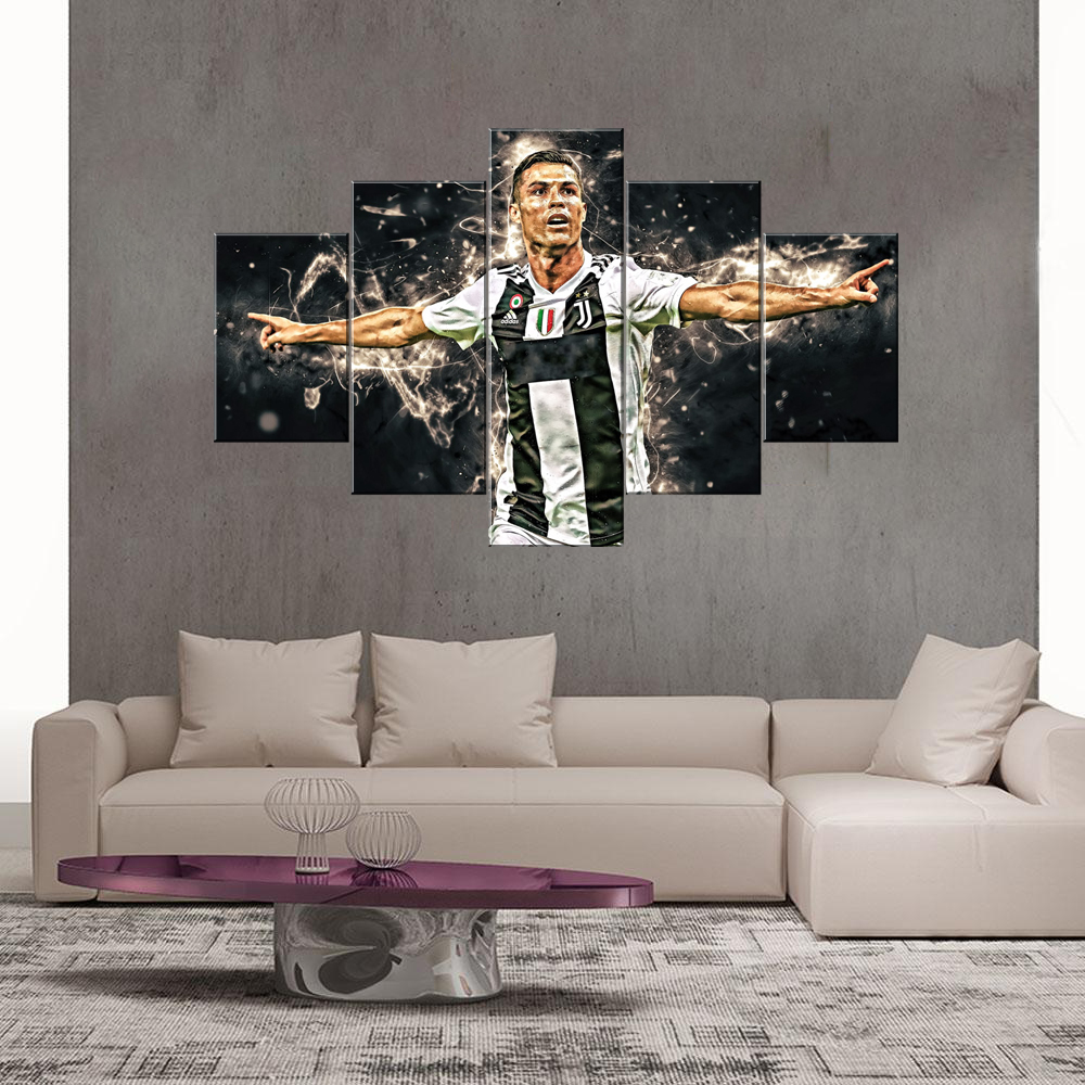 Transform your living space with the Ronaldo Juventus Canvas Print, a stunning multi-panel artwork that showcases one of the world’s greatest soccer players in an iconic pose. This canvas print features Cristiano Ronaldo (CR7) in his Juventus jersey, captured mid-celebration with arms outstretched against a dynamic, high-energy background. The high-definition imagery highlights his intensity, skill, and passion for the game, making it an inspiring centerpiece for any room. Perfect for living rooms, man caves, or themed spaces, this canvas print adds energy and style to your decor.