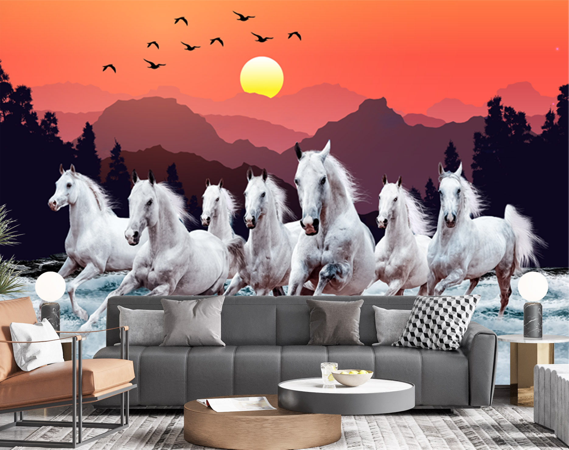 Transform your space with our Running Horses Sunset Mural Print. This mural features a breathtaking scene of white horses running across a vast landscape against a dramatic sunset. Creating a sense of freedom and movement, this mural adds energy and beauty to any room. High-quality prints ensure a lasting and visually stunning decor. Ideal for nature lovers and those seeking dynamic decor. Custom Canvas Print Nepal options are available. Explore our animal and landscape murals for inspiring designs.