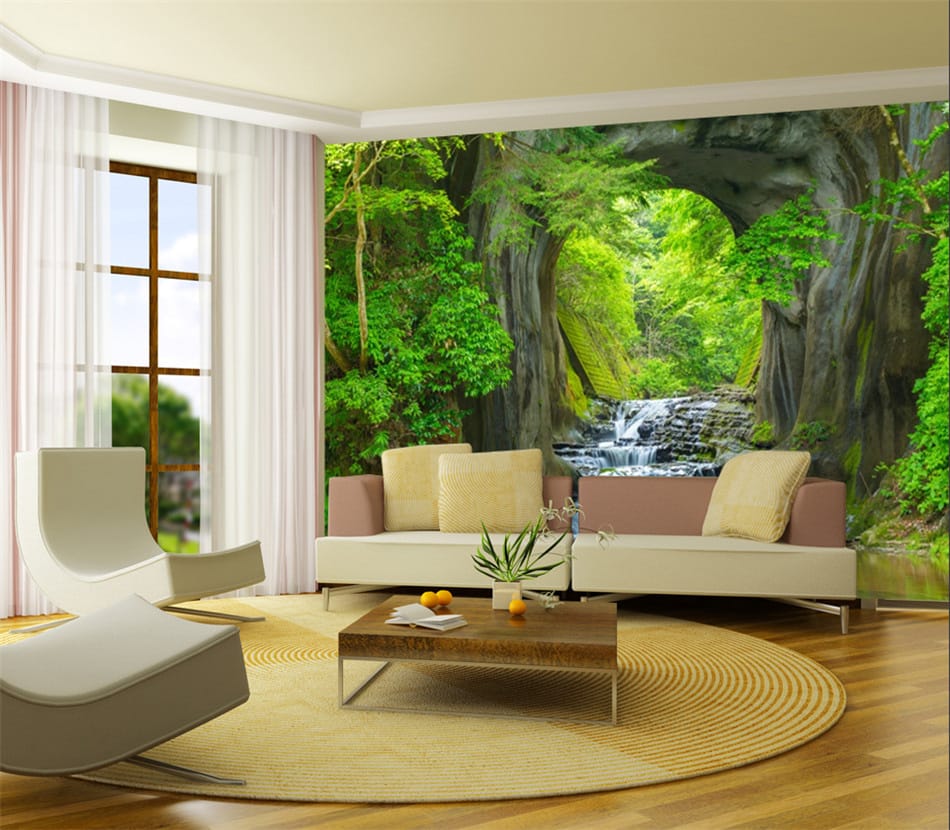 Transform your wall into a secluded paradise with the Secret Waterfall Grotto Mural. This design unveils a hidden grotto where a gentle waterfall cascades down moss-covered rocks into a clear pool. Lush green foliage surrounds the opening, creating a vibrant and refreshing natural sanctuary. The unique perspective offers a sense of discovery and tranquility, bringing the soothing sounds and sights of a hidden waterfall into your home.