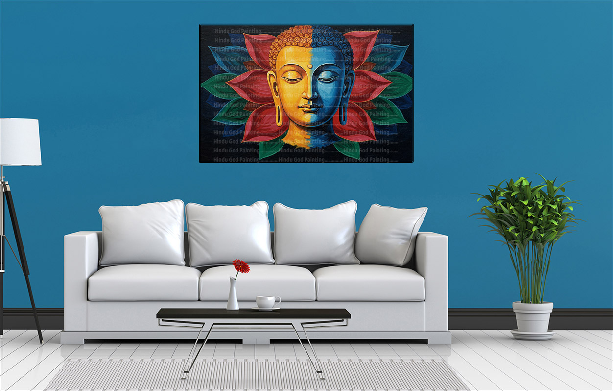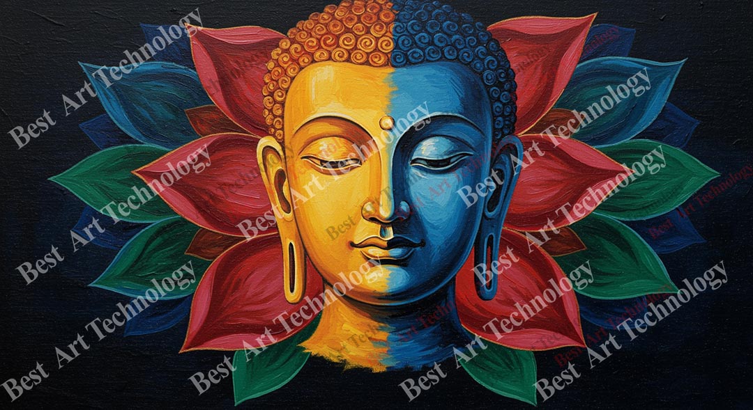 Invite a sense of balance and vibrant beauty into your space with this serene canvas art. This Serene Buddha Dual Tone Lotus Canvas embodies peace, enlightenment, and the harmonious interplay of contrasting energies and beauty.