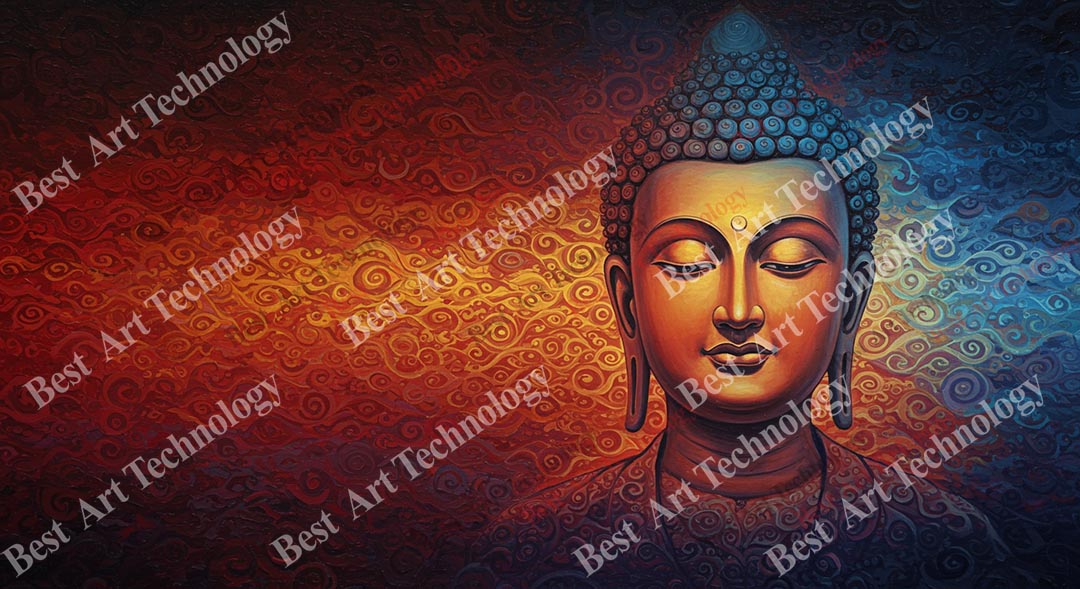 - High-Resolution Print: Captures the serene expression of Buddha and the smooth transition of color in the textured background.