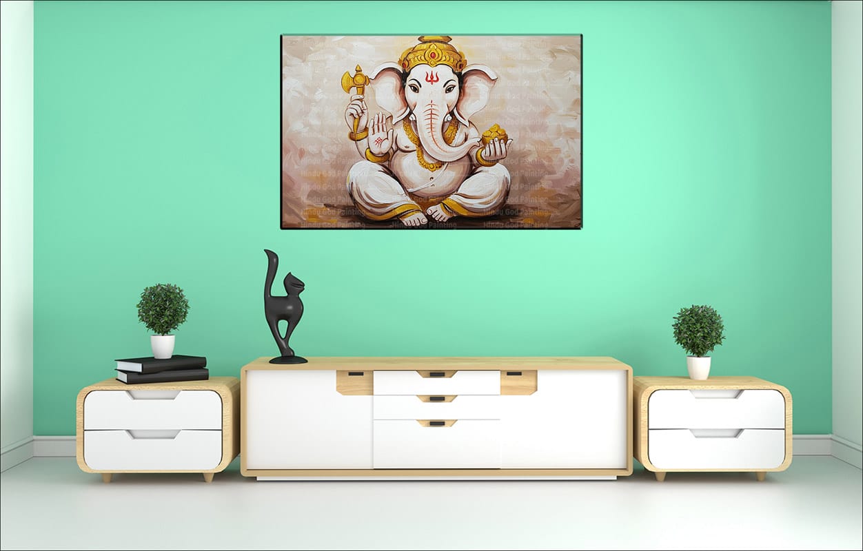 Serene Painted Ganesh Canvas: Auspicious Peace