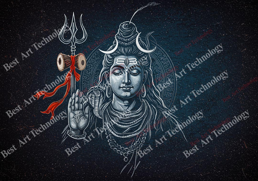 - High-Resolution Print: Captures the serene expression of Shiva, the details of the Trishul and snake, and the textured background.