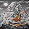 Invite a sense of serene majesty into your space with this captivating single-panel canvas art. Featuring a beautiful black and white sketch of Lord Shiva in peaceful meditation alongside his devoted companion Nandi, seated on a rocky mountain under the soft glow of a full moon and amidst swirling clouds, this Shiva Nandi Canvas offers a calming and artistic spiritual presence.