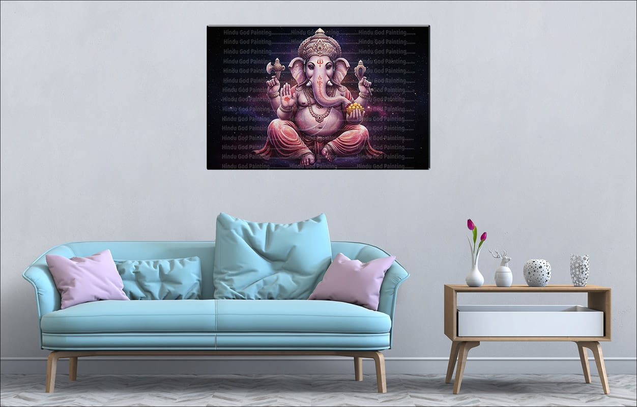 - High-Resolution Print: Captures the vibrant image of Lord Ganesh and his symbols against the detailed background with a starry effect.