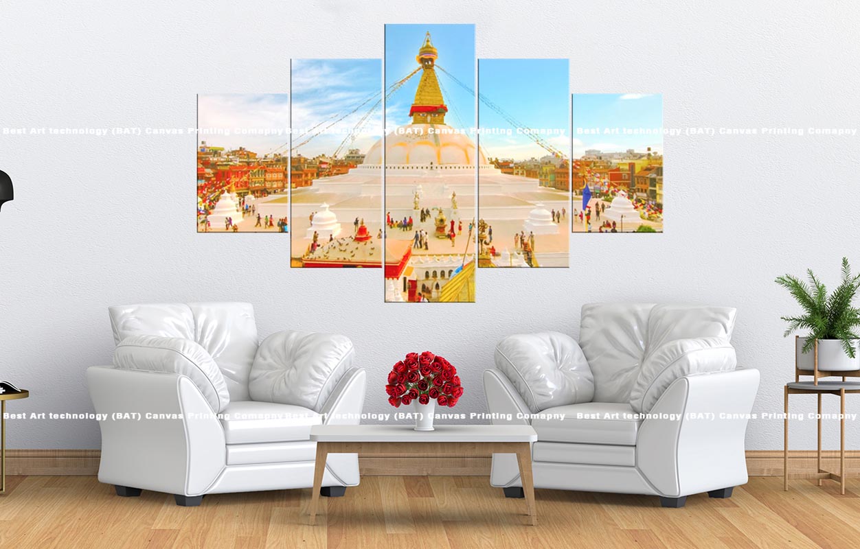 - Printed on high-quality canvas, capturing the vibrant details of the stupa and its surroundings