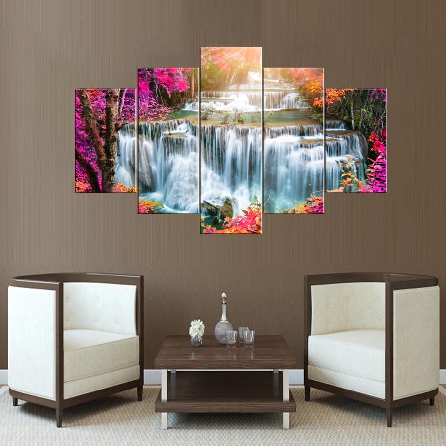 • Premium Quality Canvas Print: High-resolution multi-panel design featuring a vibrant waterfall and forest.