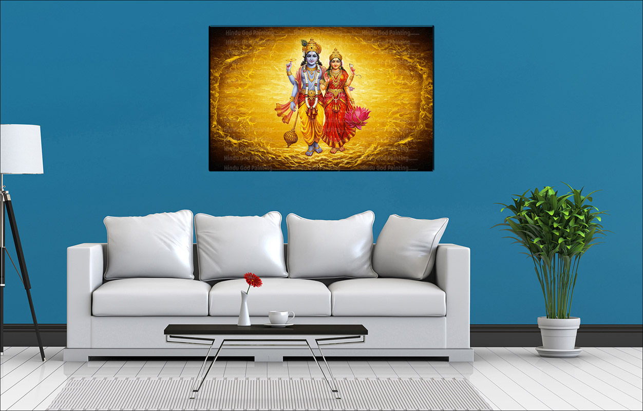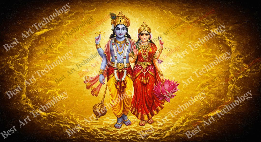 • High-Resolution Print: Captures the radiant figures of Lord Vishnu and Goddess Lakshmi in the golden aura, along with their symbolic items.