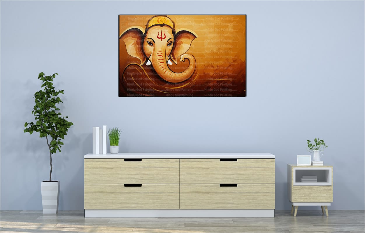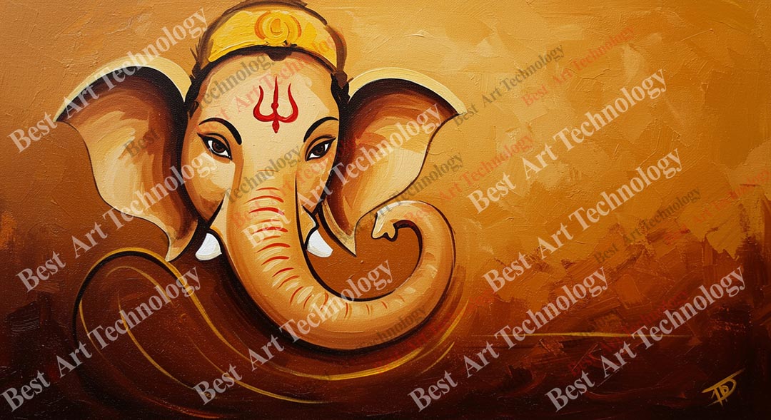 - High-Resolution Print: Captures the abstract forms of Lord Ganesh and the warm, textured golden-brown background.