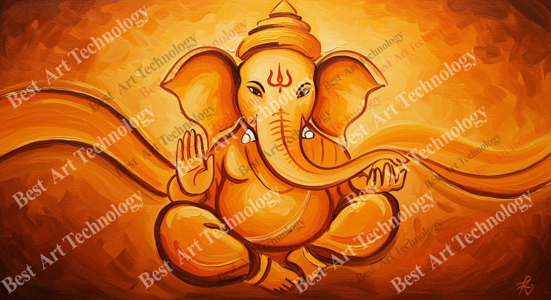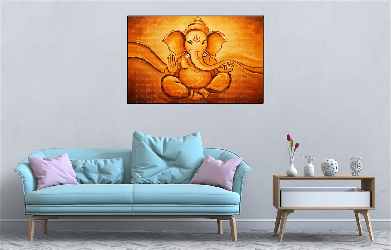 • High-Resolution Print: Captures the stylized form of Lord Ganesh and the warm, textured gradient orange background.