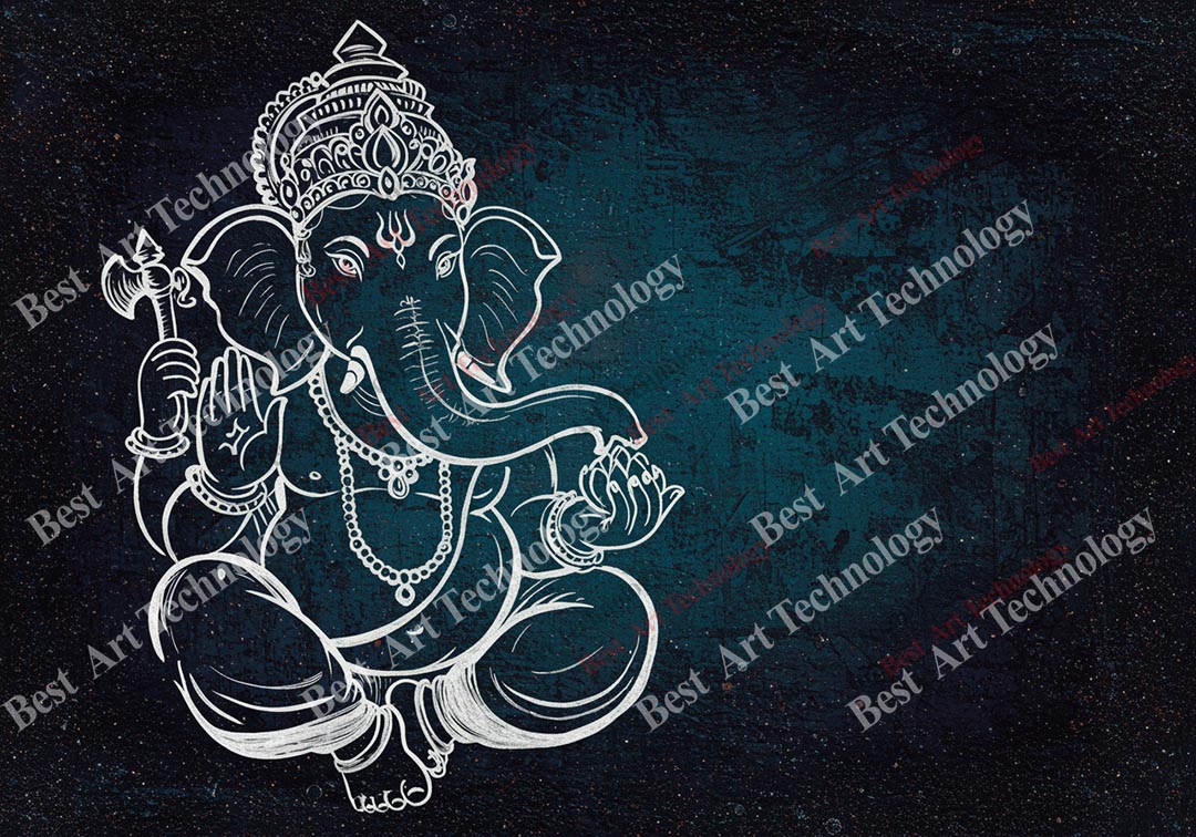 • High-Resolution Print: Captures the crisp white line art of Lord Ganesh and the textured dark background with teal accents.