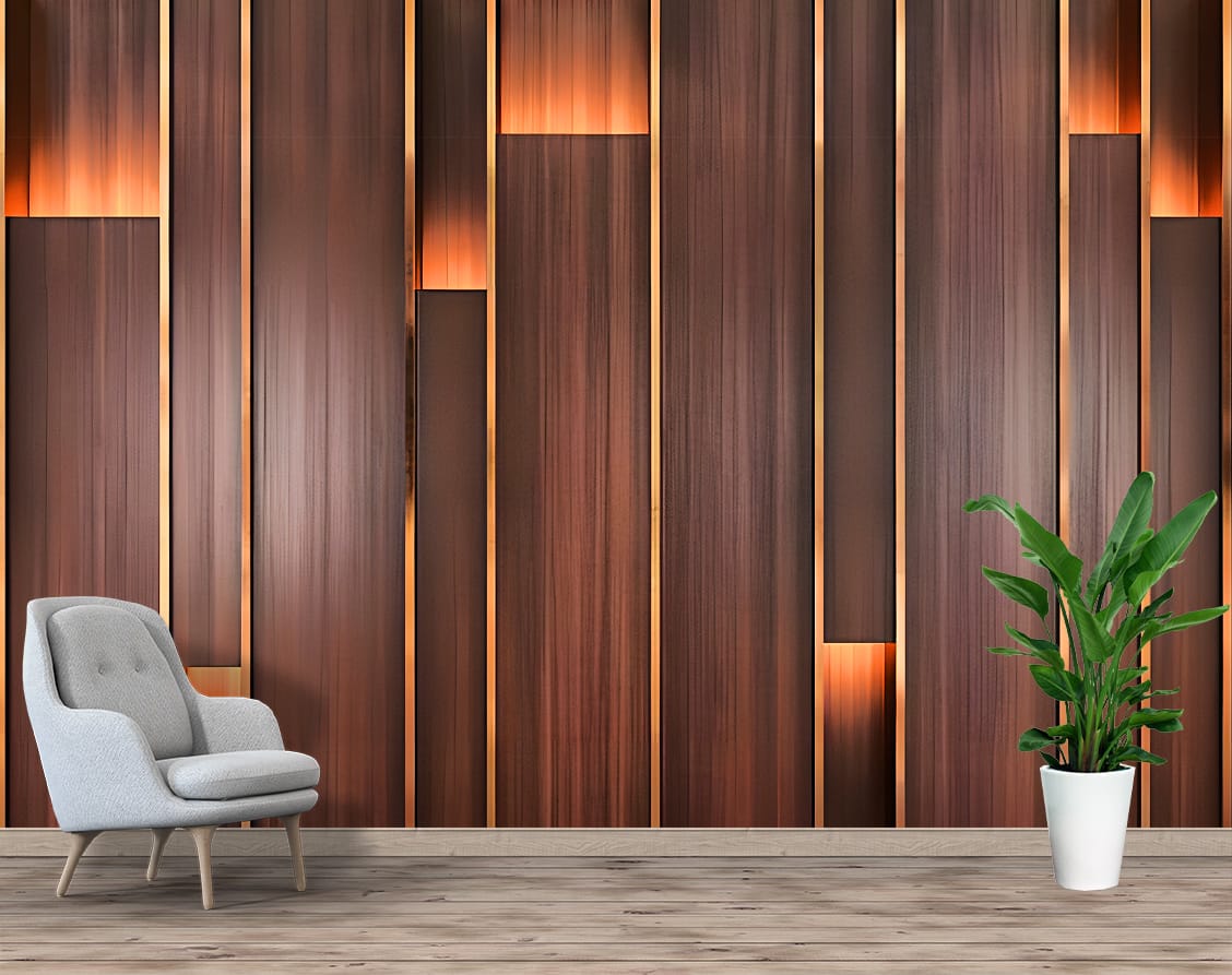 Transform your space with our Wood Panel Light Accent Mural Print. This mural features a pattern of wood panels in varying shades of brown, with integrated light accents that create a warm, glowing effect. Creating a stylish and contemporary atmosphere, this mural adds depth, texture, and a modern touch to any room. High-quality prints ensure a lasting and visually stunning decor. Ideal for those seeking modern and architectural decor. Custom Canvas Prints Nepal options are available. Explore our wood and modern murals for captivating designs.