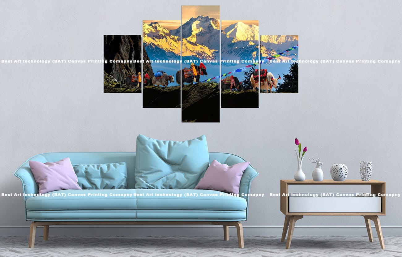 - Premium Quality Canvas Print: High-resolution multi-panel painting of a yak caravan in the Himalayas.