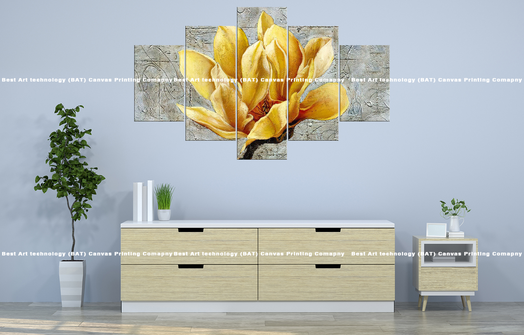 - Printed on high-quality canvas, highlighting the intricate details of the flower and its vivid yellow hue, contrasted by the subtle background.
